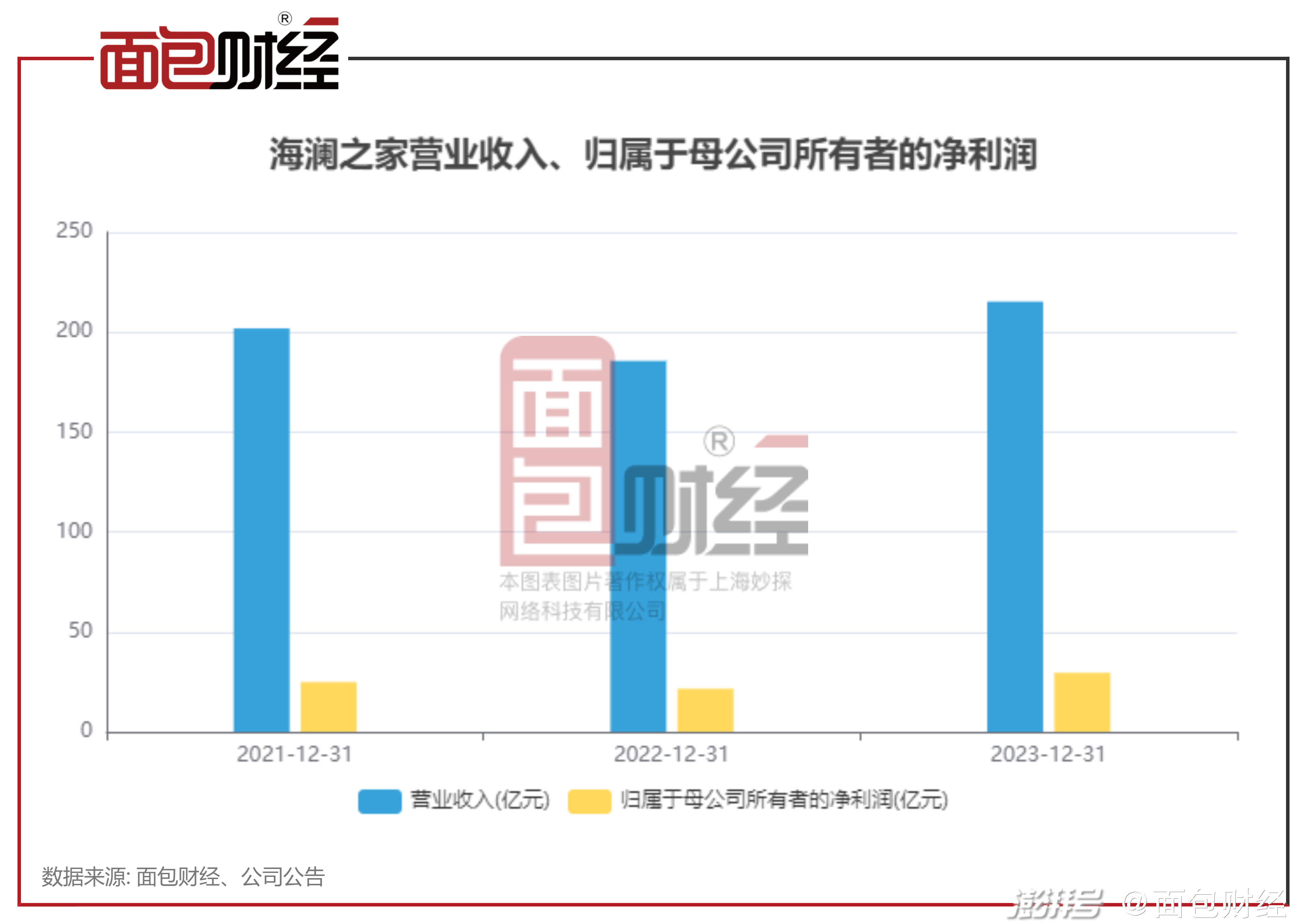 2023年,海瀾之家實(shí)現(xiàn)營收215.28億元,同比增長(zhǎng)15.98%;實(shí)現(xiàn)歸母凈利潤29.52億元,同比增長(zhǎng)36.96%。